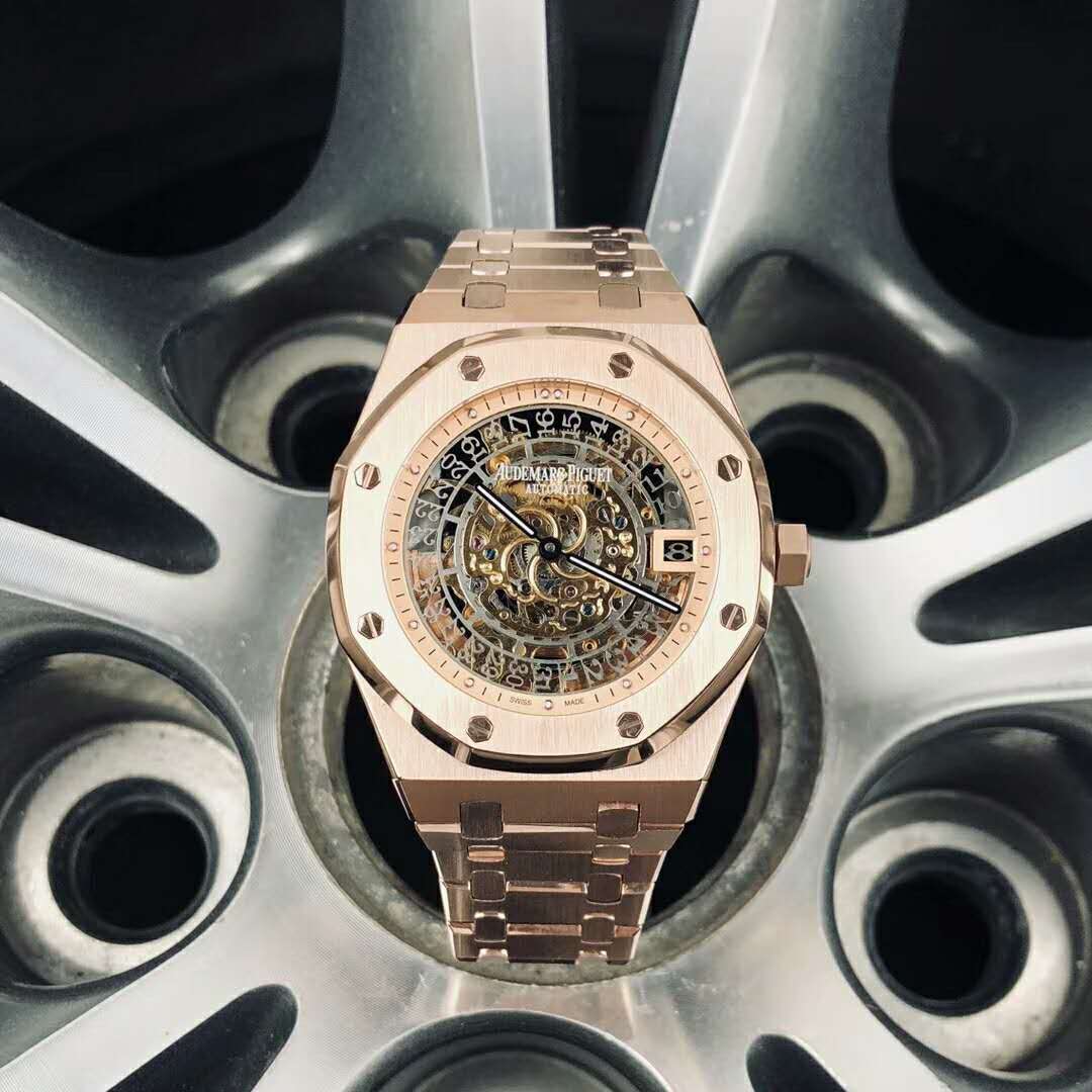 款式:愛彼 AP 鋼帶鏤空藝術之作,全新皇家橡樹系列雙擺輪鏤空腕錶
