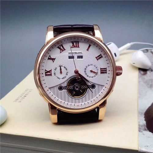 萬寶龍Montblanc男士腕錶全自動多功能機械機芯計時碼錶白色錶盤羅馬數字