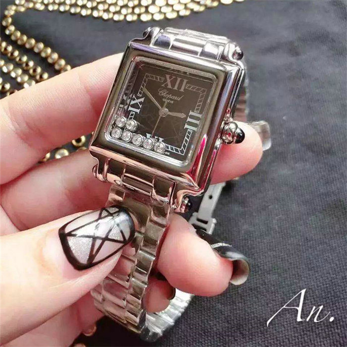 蕭邦Chopard方形走珠系列水鑽鑲嵌精鋼錶殼