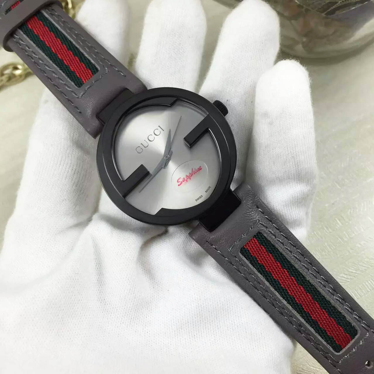 錶殼:古馳專利殼形設計,2個G形 形成的錶殼