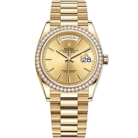 【产品介绍】2021新品,EW劳力士星期日志型36,表盘设有18ct金,镶钻石,6及9点钟位置镶方形钻石。蚝式表壳结构,一体中层表壳,旋入式底盖及上链表冠。结构尺寸厚度同步原装,直径36毫米,厚度为12毫米。