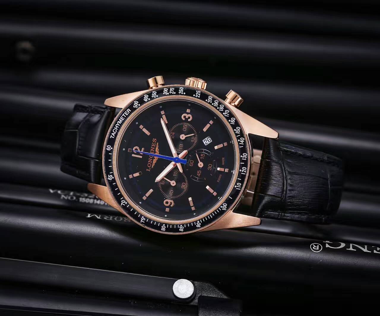 浪琴 進口石英機芯 礦物質耐磨鏡面 牛皮表帶
