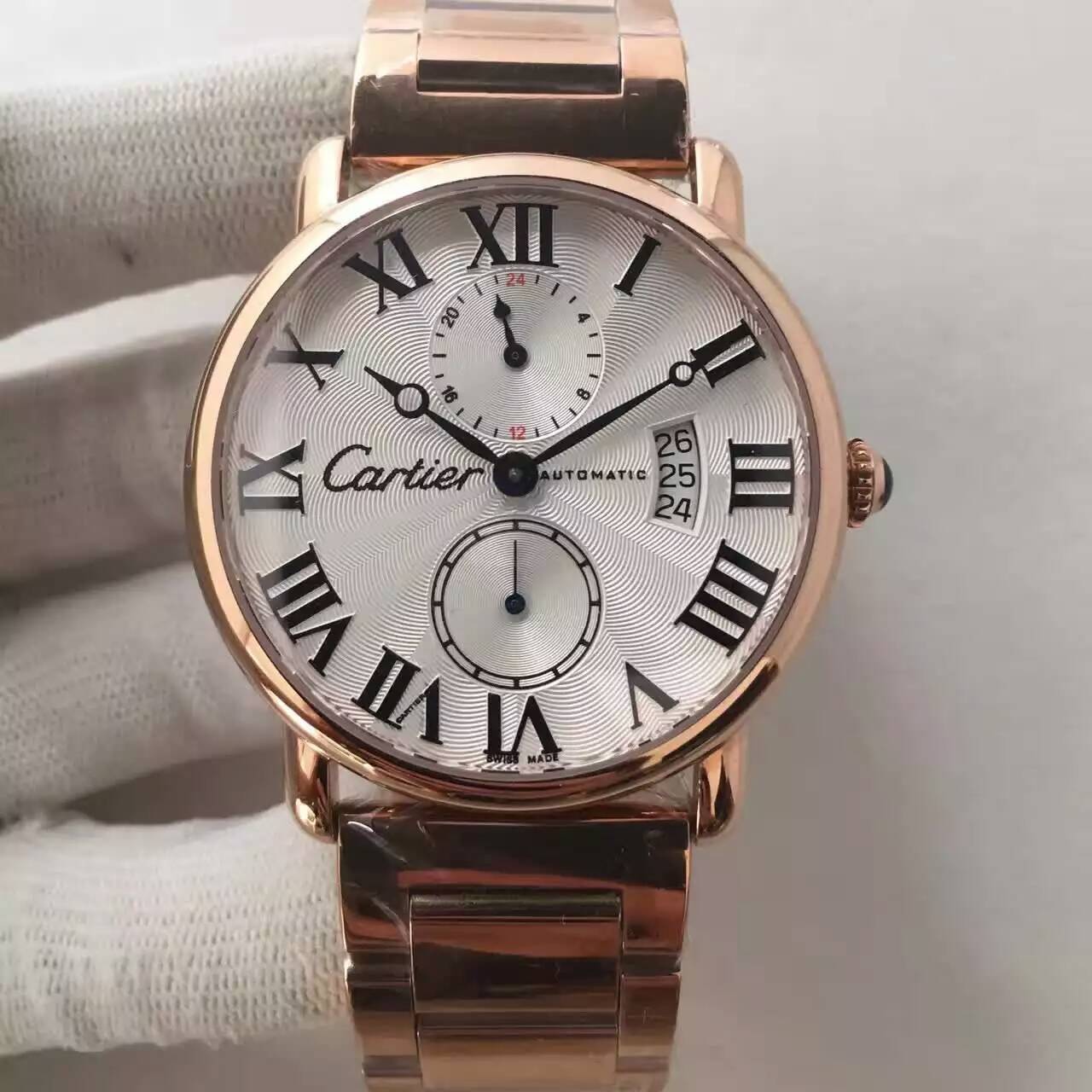描述:12位24時(兩地時區),3位日歷,6位小秒 ,透底,18k微納米電鍍玫金,28800每小時振蕩次數。