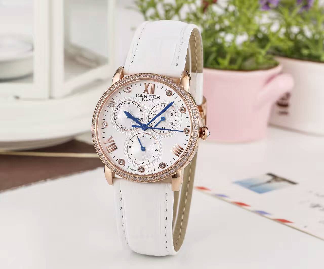 卡地亞 精品女士藍針手工鑲鉆