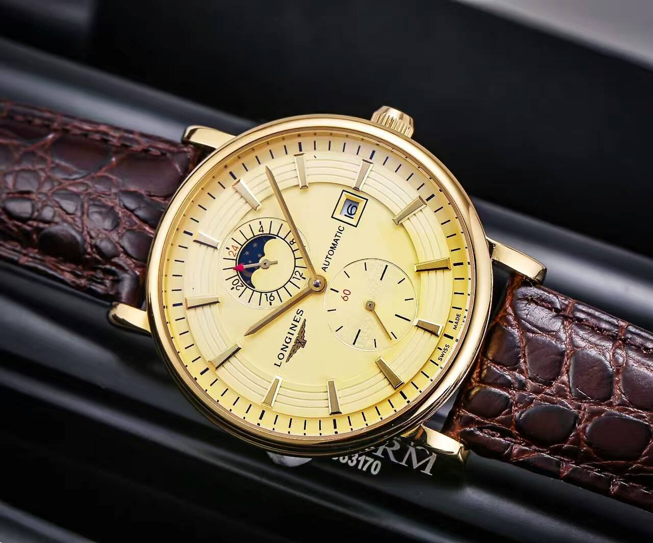 浪琴 礦物質超強鏡面 真牛皮錶帶 頂級機械機芯