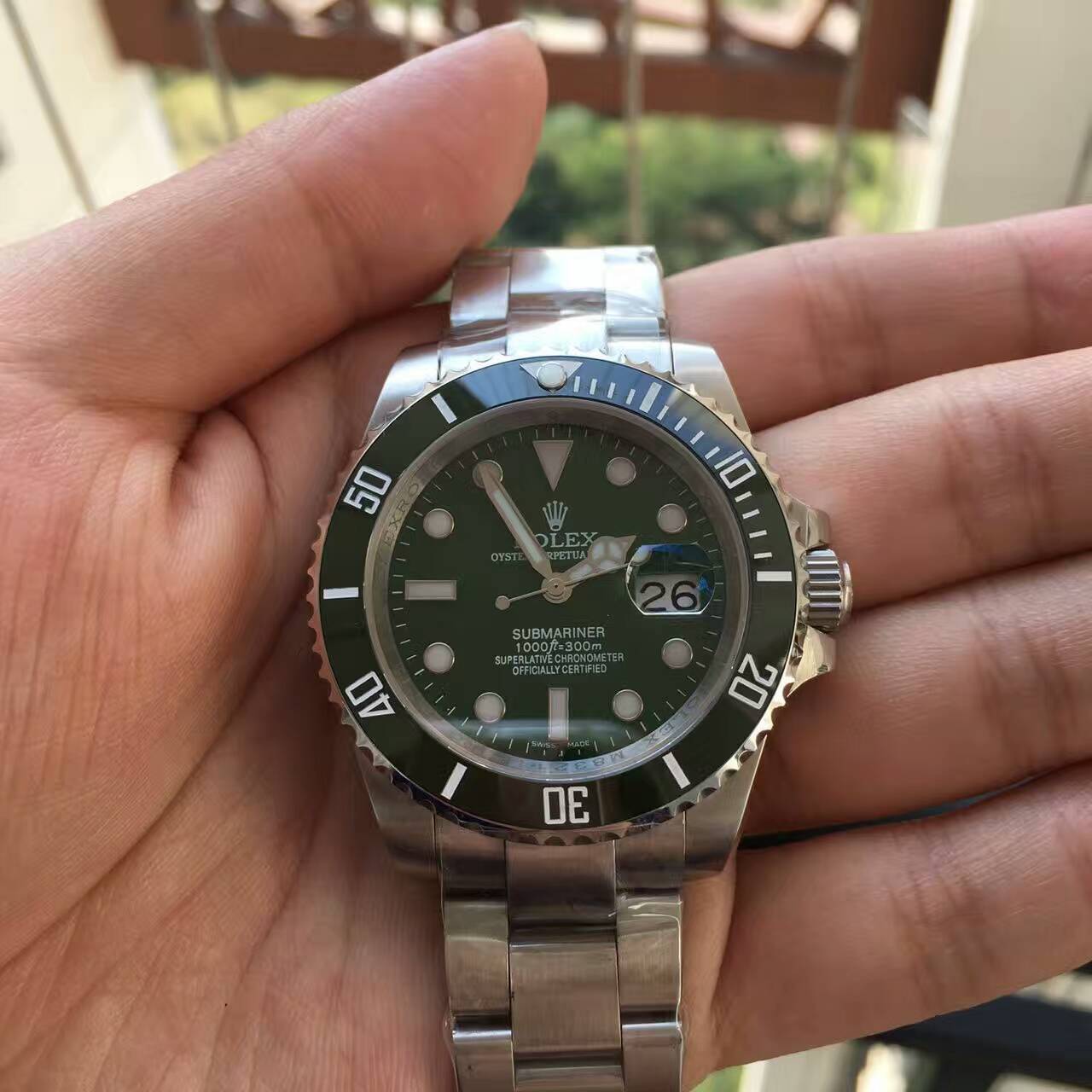描述:造訪深海水鬼,不再隨波逐流,旋轉外圈配備60分鐘刻度顯示 采用Cerachrom陶質外圈,原裝按扣,蠔式三格實心鏈節,每一細節絲毫看不出它是一只仿錶。