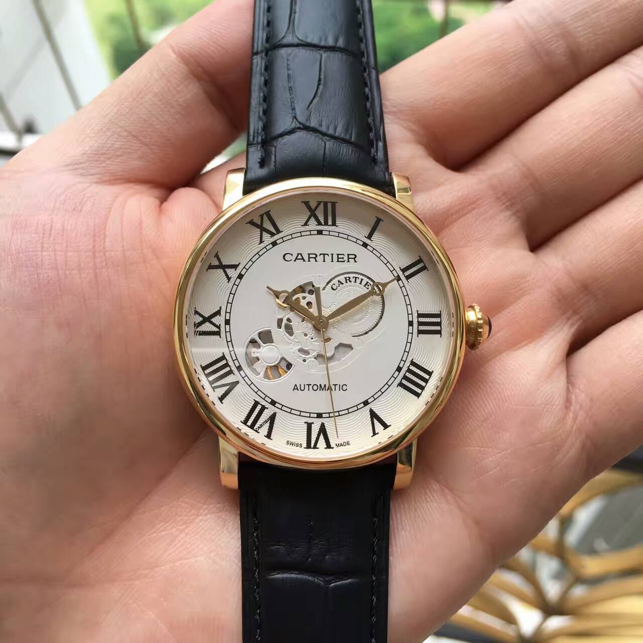 描述:卡地亞的標志性羅馬數字幻化為機芯鏤空錶橋,內里乾坤巧妙顯露。