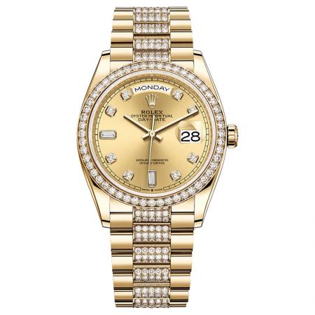 【产品介绍】2021新品,EW劳力士星期日志型36,表盘设有18ct金,镶钻石,6及9点钟位置镶方形钻石。蚝式表壳结构,一体中层表壳,旋入式底盖及上链表冠。结构尺寸厚度同步原装,直径36毫米,厚度为12毫米。