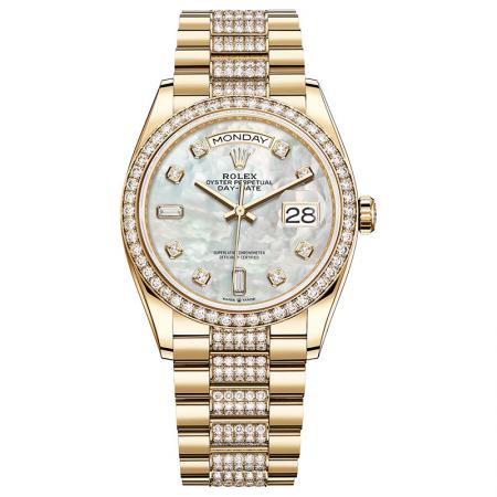 【产品介绍】2021新品,EW劳力士星期日志型36,表盘设有18ct金,镶钻石,6及9点钟位置镶方形钻石。蚝式表壳结构,一体中层表壳,旋入式底盖及上链表冠。结构尺寸厚度同步原装,直径36毫米,厚度为12毫米。