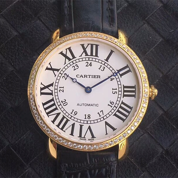 卡地亞 Cartier RONDE LOUIS CARTIER系列機械男錶 小牛皮錶帶 進口316精鋼錶殼