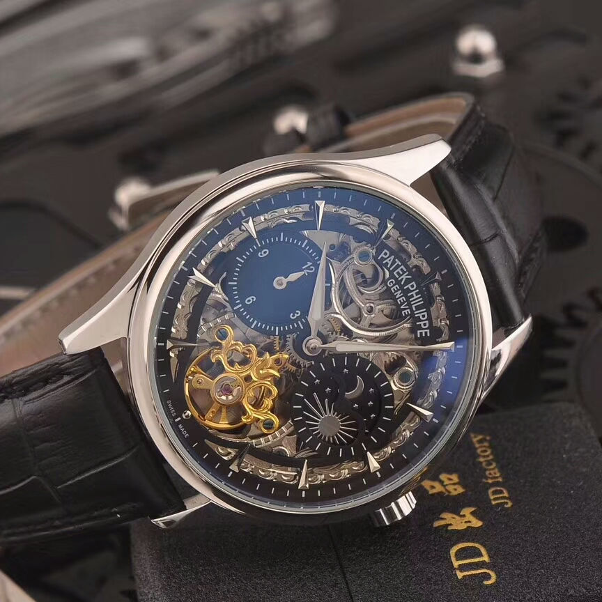 百達翡麗男士機械腕錶搭載全自動機械機芯鍍膜玻璃鏡面真牛皮錶帶