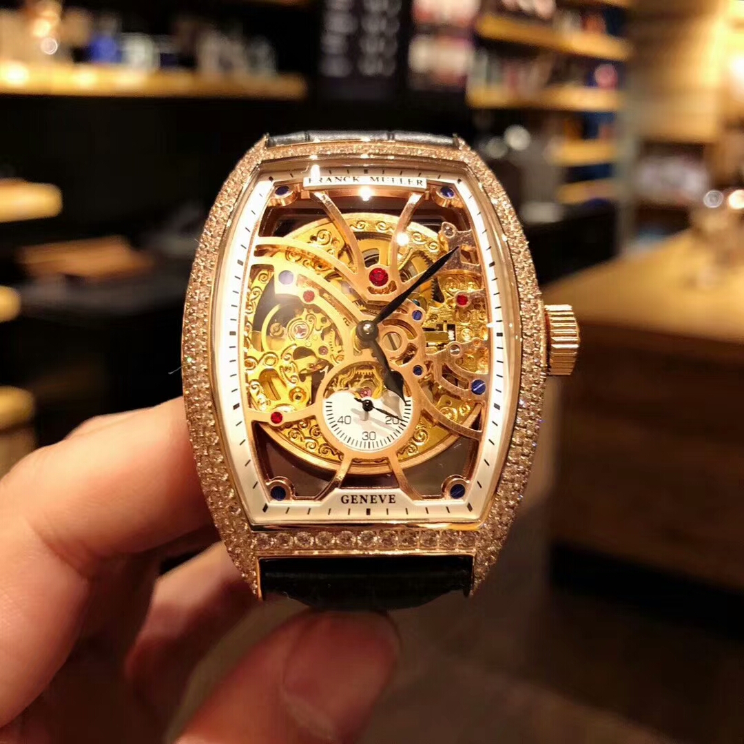 法蘭克穆勒搭載杭州鏤空機芯針扣牛皮錶帶透底採用鏤空式佈局設計機芯全貌一目了然