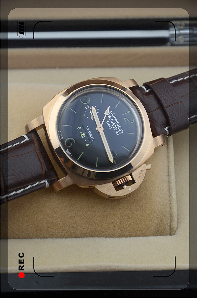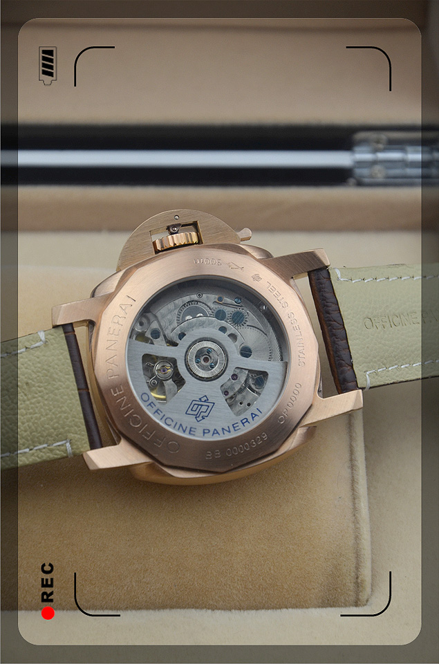 沛納海動能存儲 真皮錶帶 玫瑰金黑面 背透機芯PNH8555780