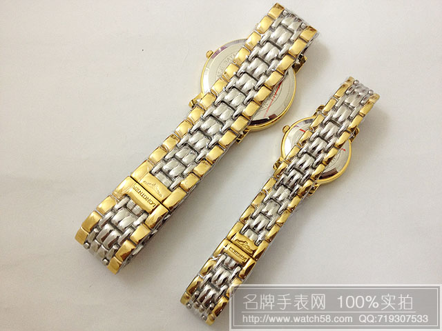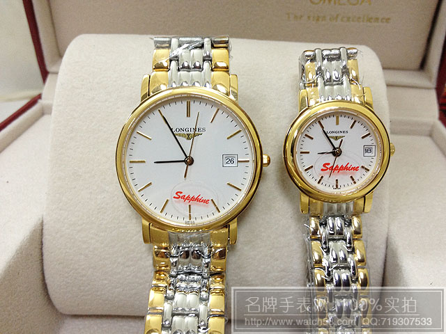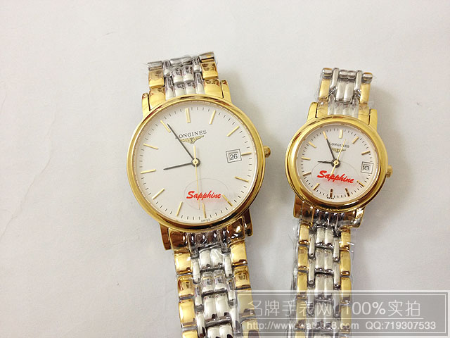浪琴情侶手錶石英機芯藍寶鏡面漸金錶帶