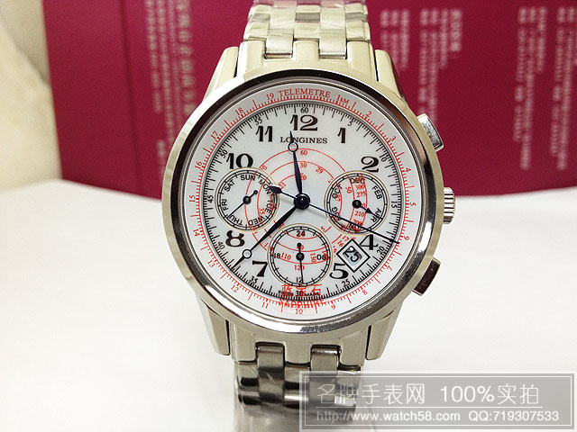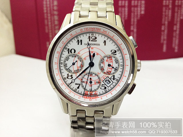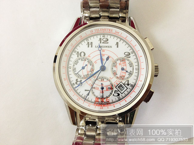 浪琴白色錶盤藍寶鏡面6針全自動機械機芯LQ92
