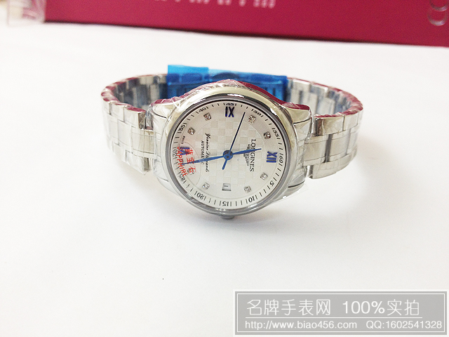 浪琴女士機械手錶藍寶鏡面鑽石刻度精鋼錶帶