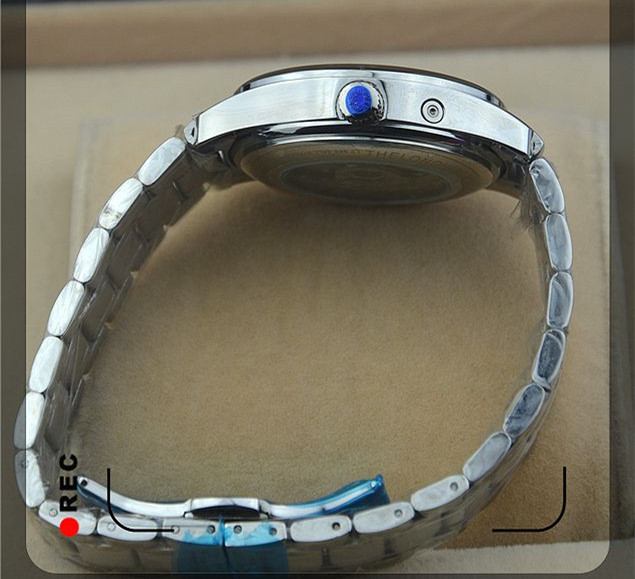 材質:高硬度耐磨藍寶石鏡面,全鋼錶殼,銀色錶圈,精鋼散珠錶帶,蝴蝶雙按扣,白色錶盤,藍色錶針,簡單數字刻度