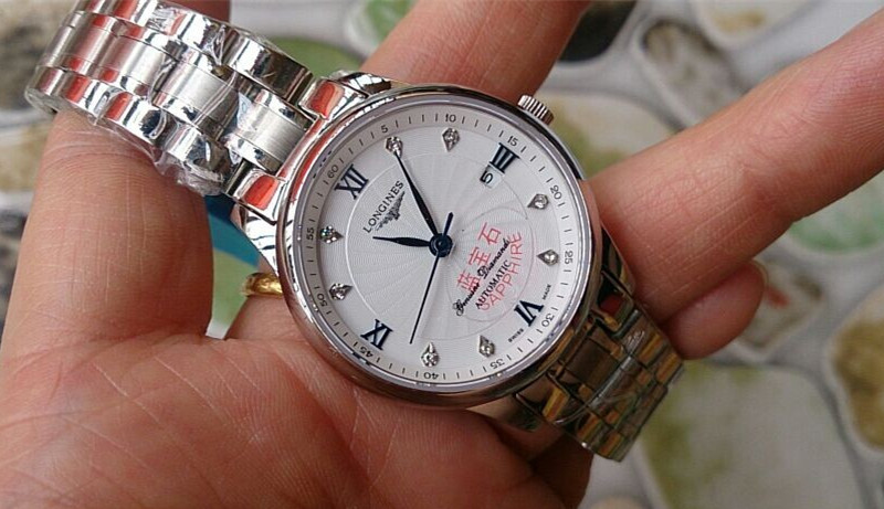 浪琴 名匠系列 銀色鑲鉆錶盤全自動機械女錶