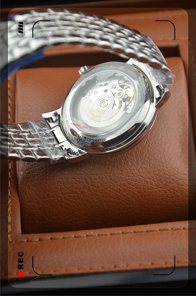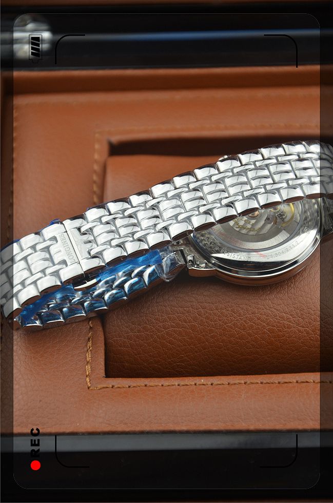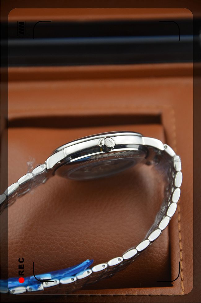 基本參數:系列:瑰麗系列款式:男錶機芯:自動機械機芯2824機芯型號:2824錶殼:不銹鋼尺寸:39mm厚度:10mm 重:120錶冠:普通錶底:透底錶鏡:藍寶石水晶玻璃錶盤:白色錶帶:不銹鋼錶帶顏色:銀色錶扣:蝴蝶扣防水:生活防水包裝:精美包裝盒、說明書、保修卡等功能:日期顯示 大三針推出年份:2009年 ———————————————————————————————————————————————————————————