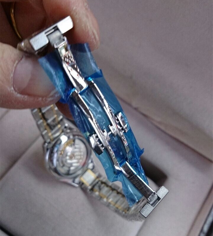 款式:男錶機芯:自動機械機芯ETA2892錶殼:不銹鋼 PVD鍍金尺寸:32mm厚度:9.1mm 重80克錶冠:普通錶底:透底錶鏡:藍寶石水晶玻璃錶盤:鍍金白色錶帶:不銹鋼 PVD鍍金錶帶顏色:間金錶扣:蝴蝶扣防水:生活防水包裝:精美包裝盒、說明書、保修卡等功能:日期顯示 大三針