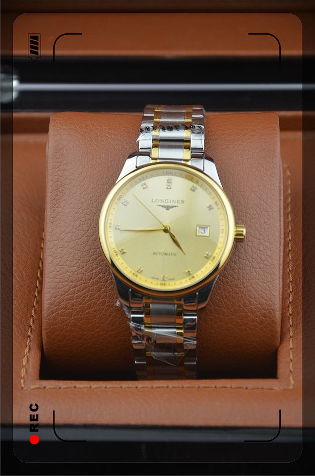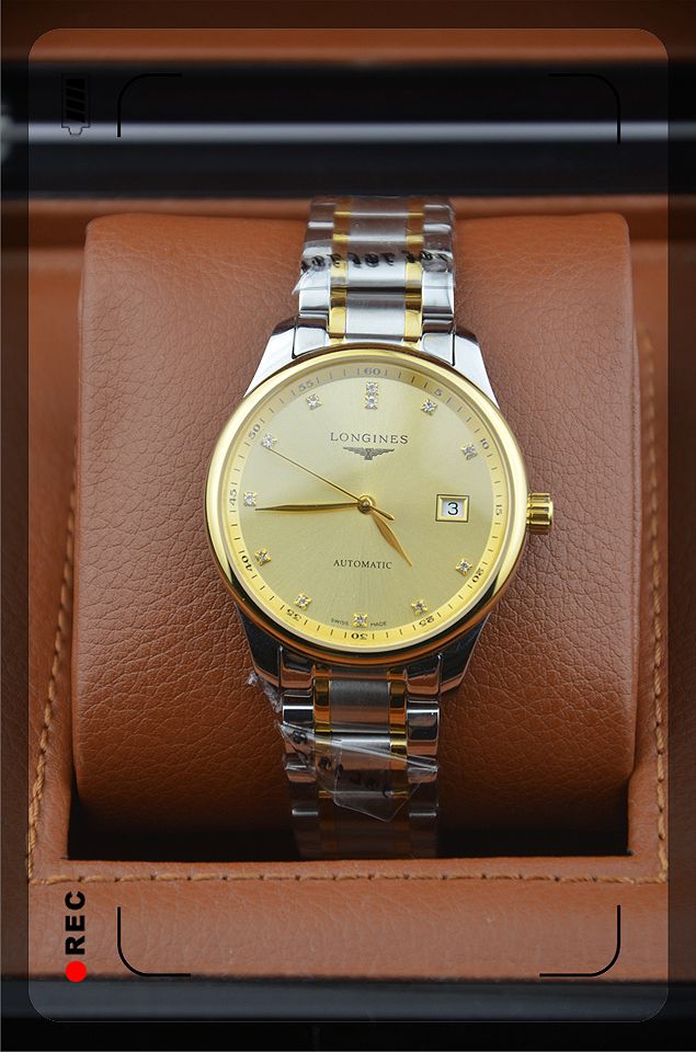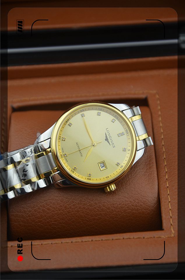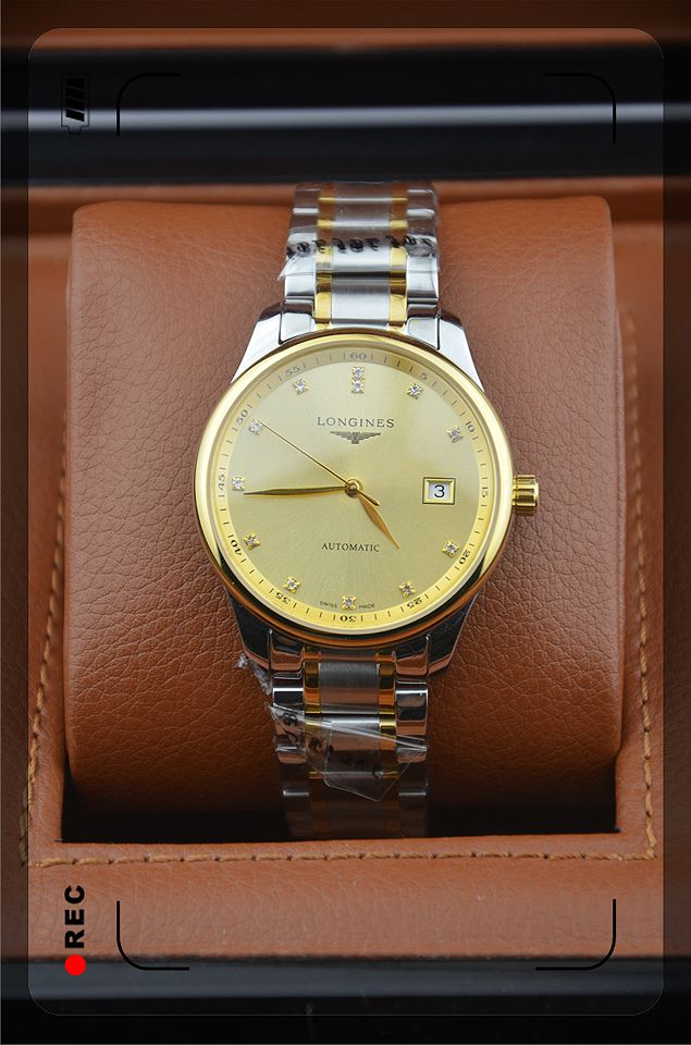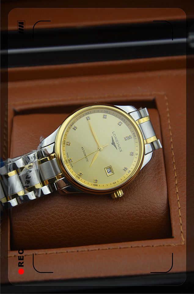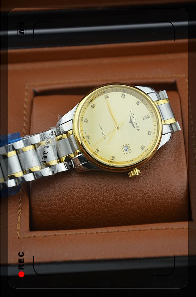 浪琴軍旗金色面鋼帶男士腕錶進口ETA2824