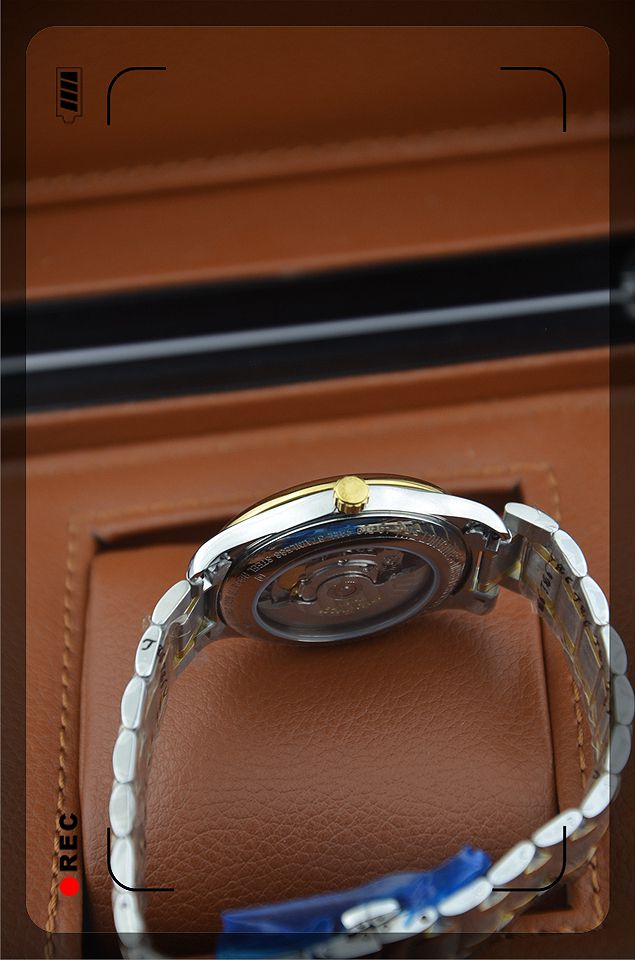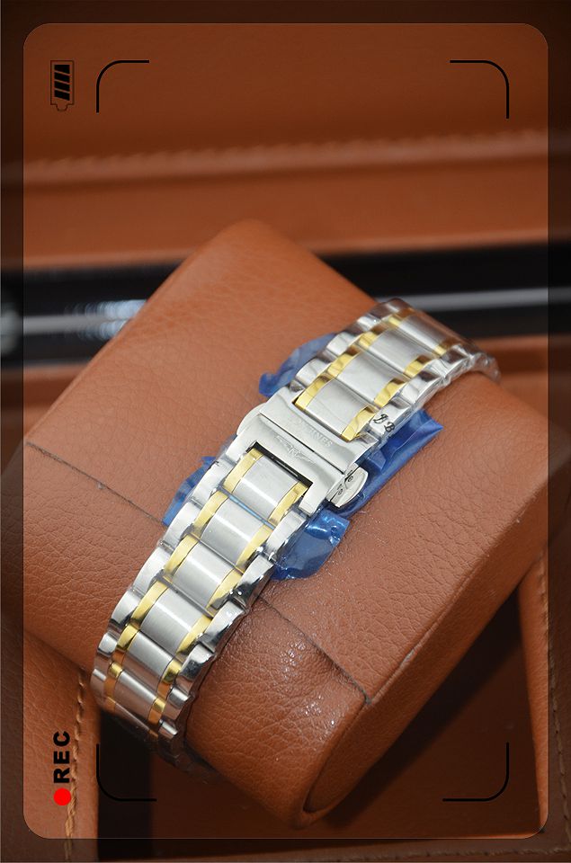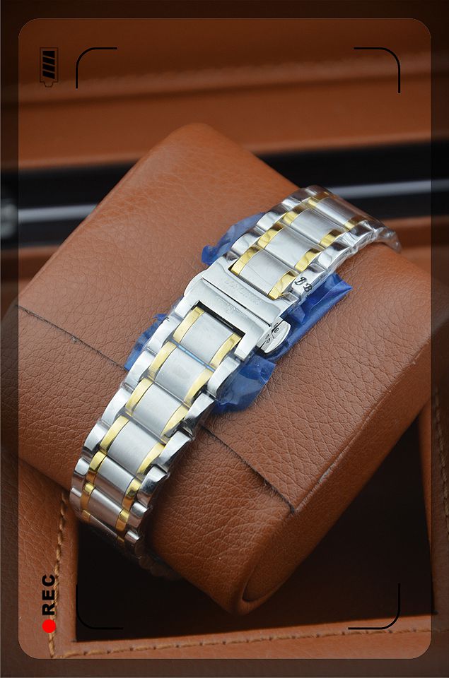 系列:軍旗款式:男錶機芯:自動機械機芯2824機芯型號:2824錶殼:不銹鋼尺寸:38mm厚度:10.6mm 重:110錶冠:普通錶底:透底錶鏡:藍寶石水晶玻璃錶盤:金色錶帶:不銹鋼錶帶顏色:漸金錶扣:蝴蝶扣防水:生活防水包裝:精美包裝盒、說明書、保修卡等功能:日期顯示 大三針推出年份:2009年