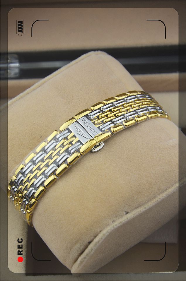 系列:律雅系列款式:男錶機芯:自動機械機芯錶殼:不銹鋼 PVD鍍金尺寸:38mm厚度:9.9mm 重:110克錶冠:普通錶底:不透底錶鏡:藍寶石水晶玻璃錶盤:白色錶帶:不銹鋼 PVD鍍金錶帶顏色:金色 銀色錶扣:蝴蝶扣防水:生活防水包裝:精美包裝盒、說明書、保修卡等功能:大三針 日期顯示 ———————————————————————————————————————————————————————————