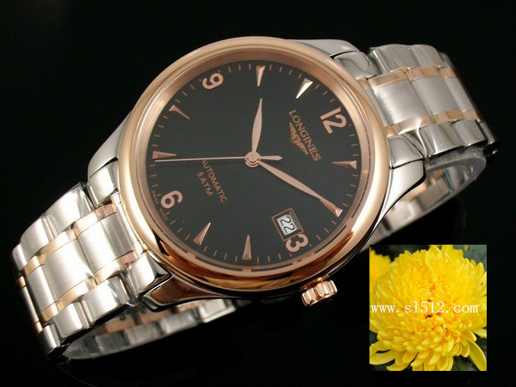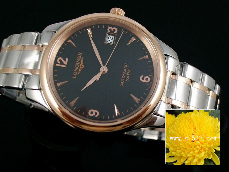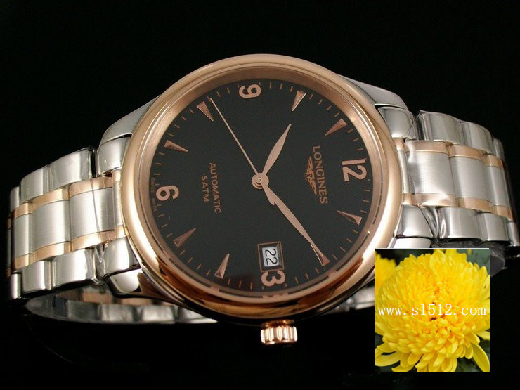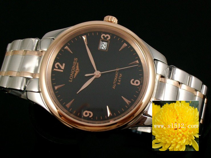 瑞士機芯浪琴Longines名匠系列男錶 玫瑰金錶殼間玫瑰金鋼帶 黑面