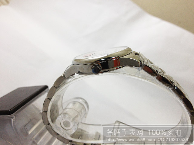 錶盤:白色靜鋼錶圈,藍寶石鏡面
