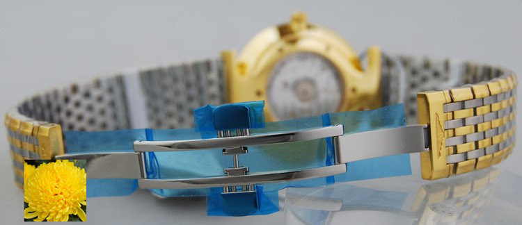 系列:嘉嵐系列款式:男錶機芯:瑞士進口自動機械機芯錶殼:PVD電鍍,黃金尺寸:34mm厚度:6mm錶冠:普通錶底:普通錶鏡:藍寶石水晶玻璃錶盤:白色錶帶:間金鏈帶錶帶顏色:銀色 金色錶扣:蝴蝶雙按扣防水:30米包裝:精美包裝盒、說明書、保修卡