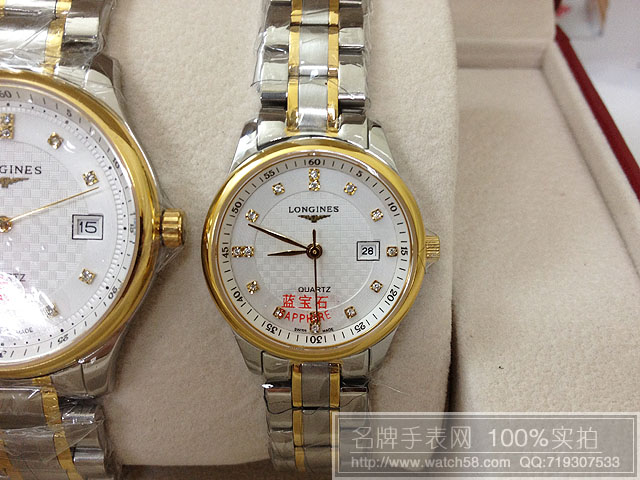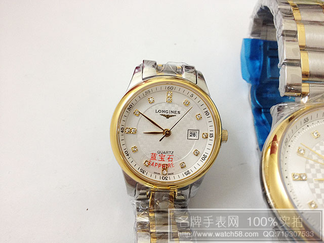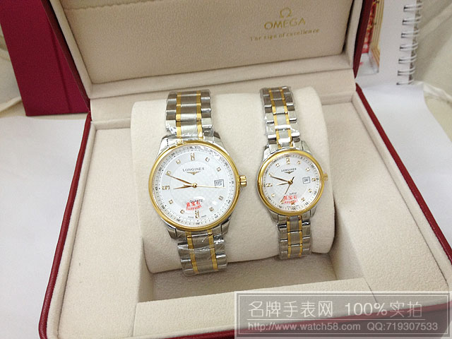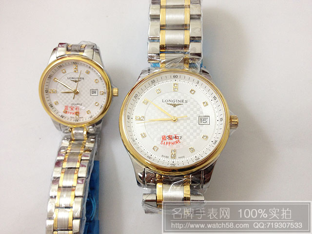 商品屬性 [品牌]浪琴 [款式]男款[機芯]石英機芯[錶盤]白色鉆石刻度[鏡面]藍寶石水晶玻璃[錶殼]全精鋼錶殼[錶帶]全精鋼錶帶[防水]生活防水[厚度]0.8CM[尺寸]男:錶盤寬度:3.6CM,厚度:0.8CM,重:120克 女款:錶盤寬度:2.8CM,厚度:0.8CM 重:70克[功能]日歷[配件]原裝盒,說明書,質保卡,吊牌,香港發票