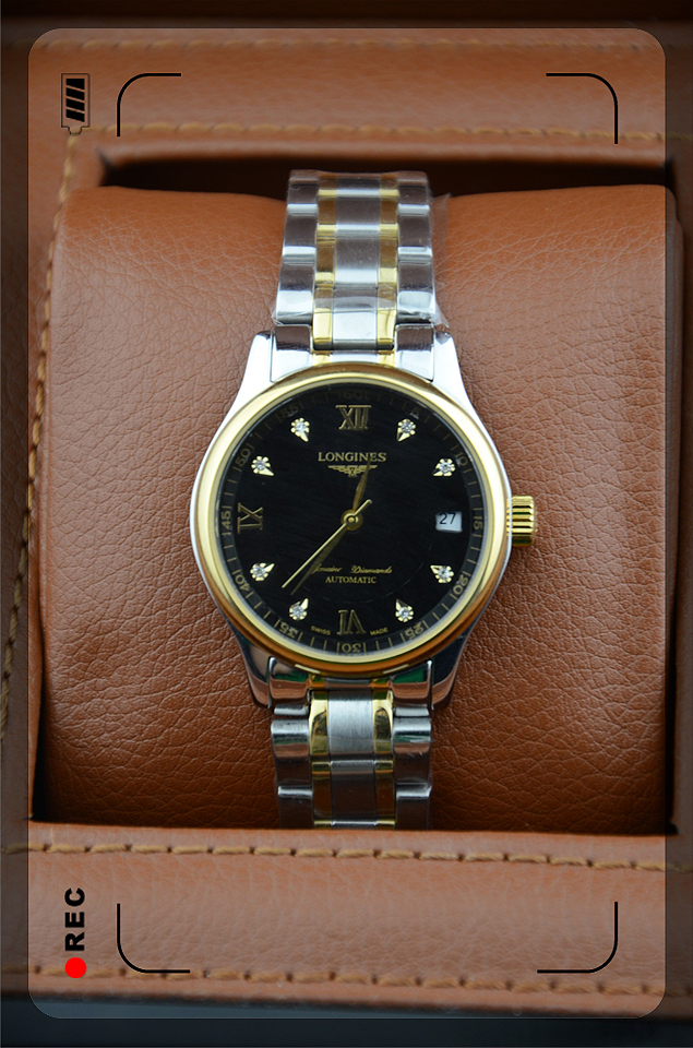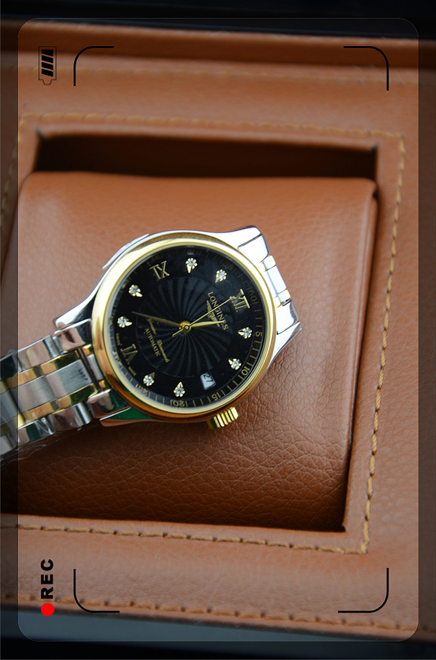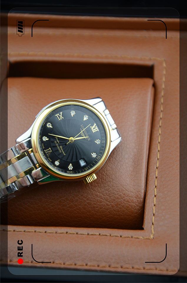 浪琴longines名匠系列全自動進口機械機芯男士腕錶間金黑盤椰子面