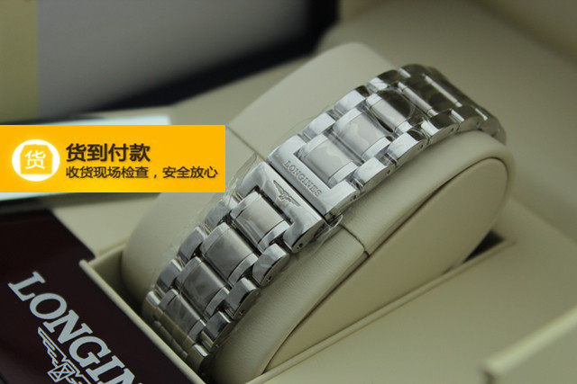 【品牌】longines【尺寸】男款:錶盤:39MM,厚度10MM,重 130克【機芯】瑞士ETA2824全自動雕花機械【款式】男款【材質】高耐磨損藍寶石鏡面(莫氏硬度九級(鉆石十級)永不磨損;原裝錶扣 鋼帶【顏色】如圖壹樣【標誌】錶盤、錶蓋、錶帶、錶扣均有此品牌標誌【功能】日歷窗口 生活防水 防震 防磁