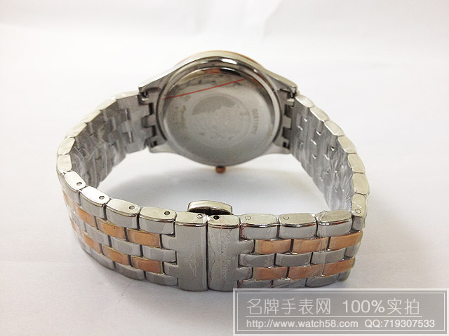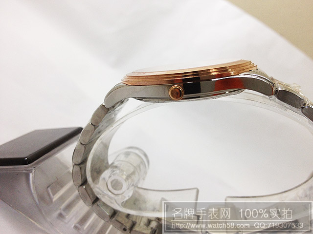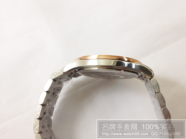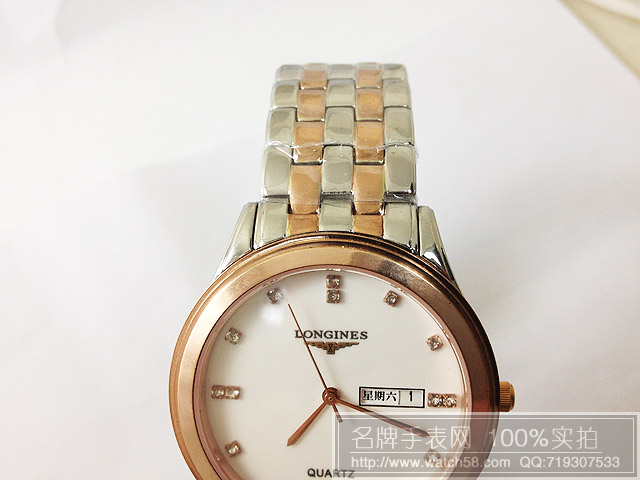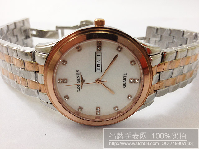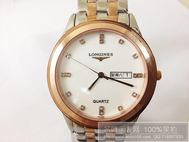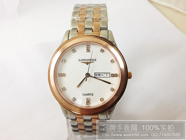 浪琴玫瑰金石英手錶,3針雙日曆超薄男錶