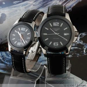 特價Longines浪琴手錶康卡斯皮帶黑陶瓷圈三針3針石英機械情侶對錶