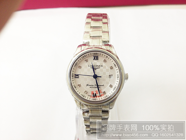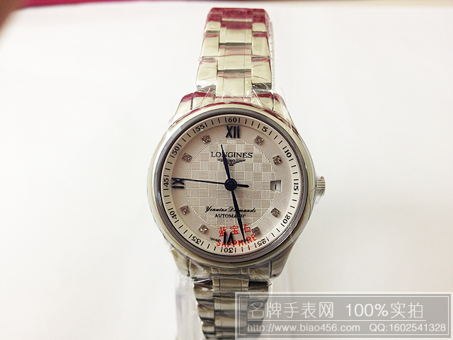 浪琴女士機械手錶藍寶鏡面鉆石刻度精鋼錶帶