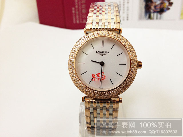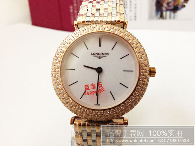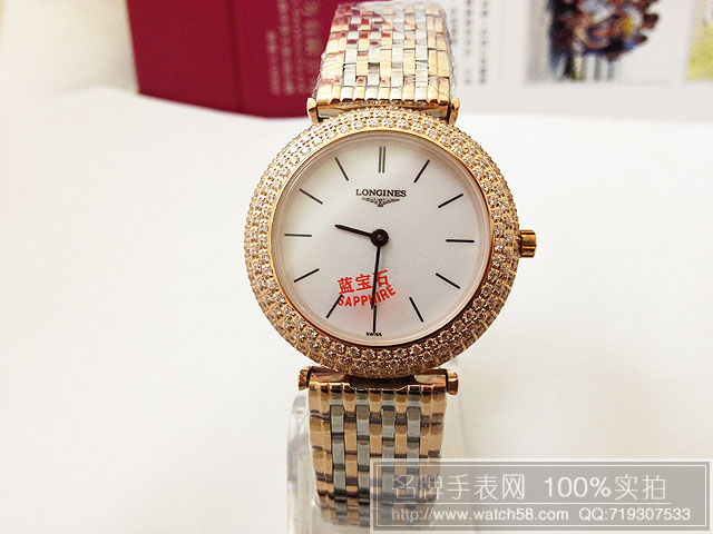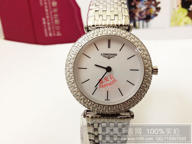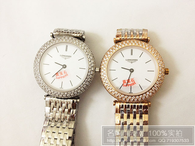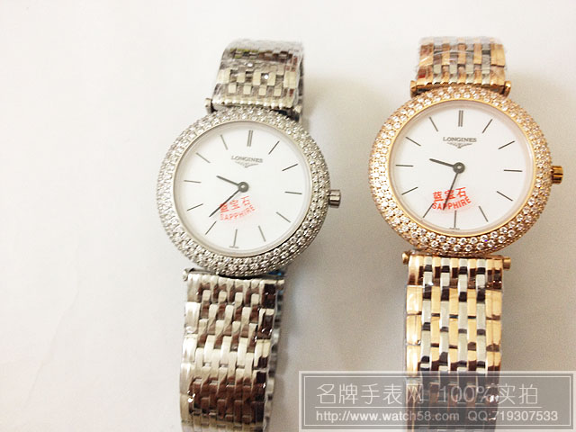 商品屬性 [品牌]浪琴 [款式]女款[機芯]瑞士石英機芯[錶盤]白色條釘刻度[鏡面]藍寶石水晶玻璃[錶殼]全精鋼鑲鉆錶殼[錶帶]全精鋼錶帶[防水]生活防水[厚度]0.6CM[尺寸]寬度:3.2CM,厚度:0.6CM 重:90克,瑞士石英 360元[配件]原裝盒,說明書,質保卡,吊牌,香港發票