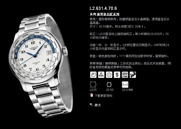 【品牌】浪琴"Longines(名匠世界時間六字位日歷,廠家直銷最低價格)