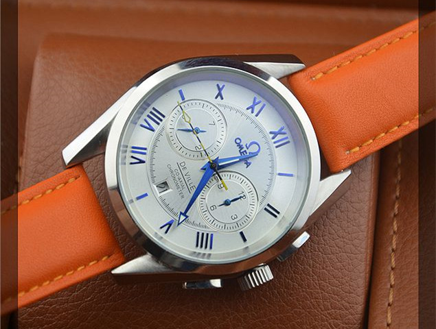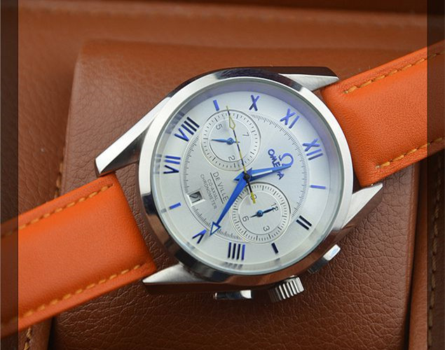 歐米茄新款上市真皮錶帶進口機芯雙錶盤單曆羅馬刻度男士機械腕錶