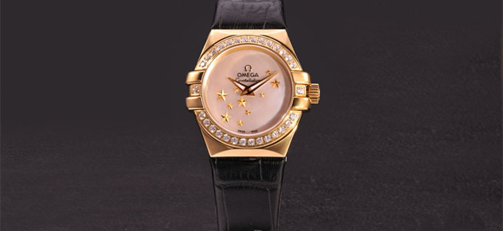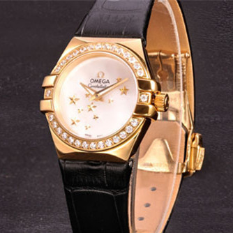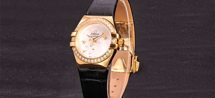 歐米茄星座系列Star女款 玫瑰金環鉆錶圈 白色貝母字面 兩針瑞士石英女錶