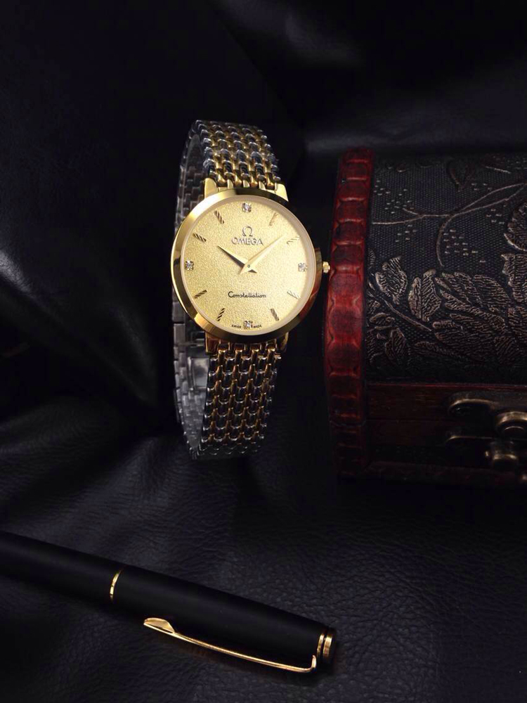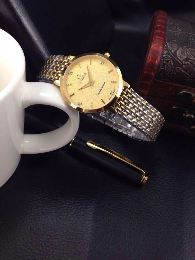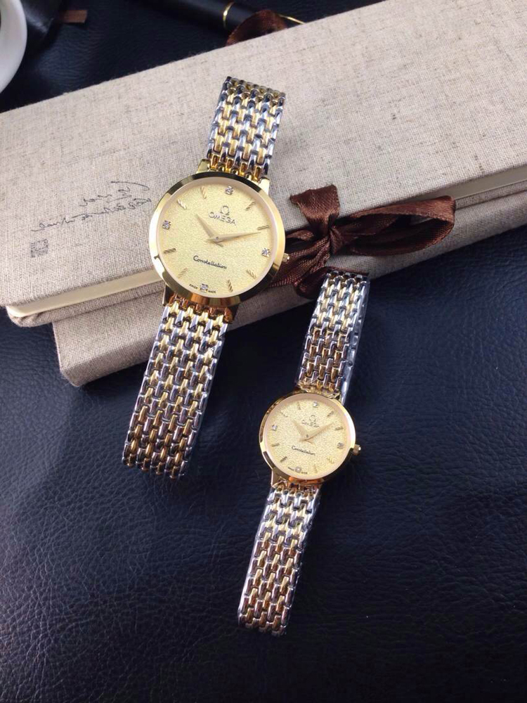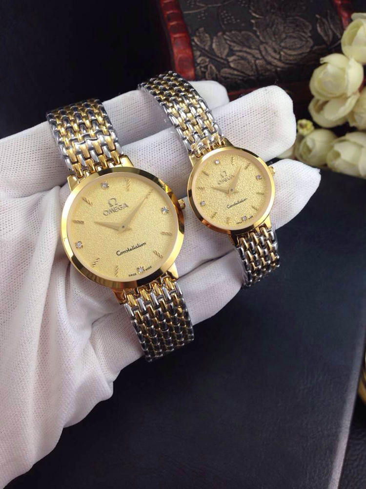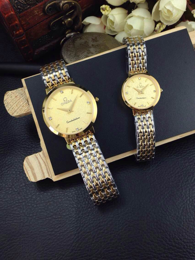 歐米茄超薄系列情侶石英對錶,黃金色錶面酸間金錶殼,精鋼鋼帶