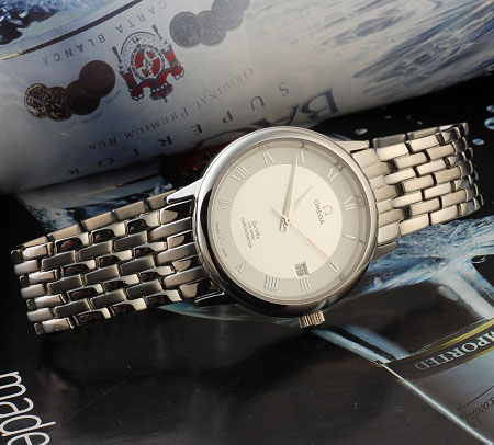 【品牌】歐米茄(OMEGA)碟飛系列 超A貨【男款尺寸】3.7cm(錶面直徑) 0.8CM(厚度) 【機芯】日本機械機芯 【功能】日歷生活防水、防震【材料】全精鋼錶殼.錶帶 ,永不褪色【錶面】藍寶石水晶防劃鏡面【標誌】錶殼、錶帶、錶扣均有OMGEA標誌【顏色】黑色,白色和白盤金邊【照片】本圖為實物拍攝,所見即所得