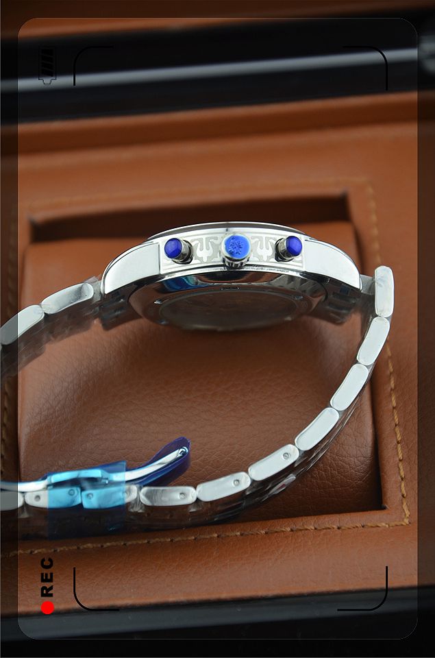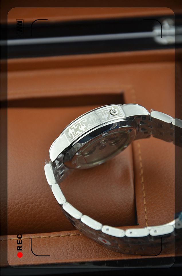 【材質】:高硬度耐磨藍寶石鏡面,鍍金全鋼錶殼,316精鋼錶帶,耐磨抗劃