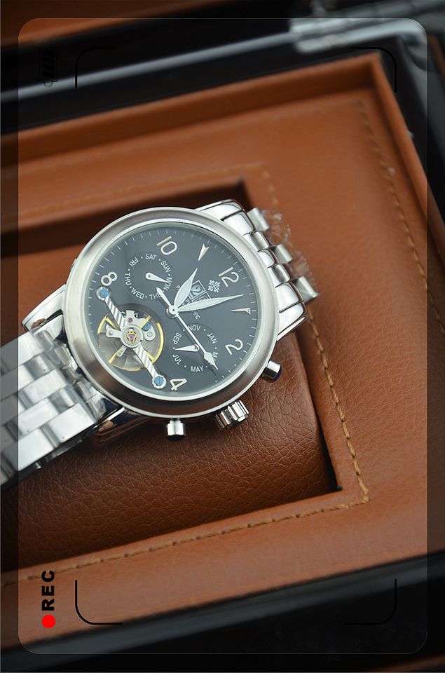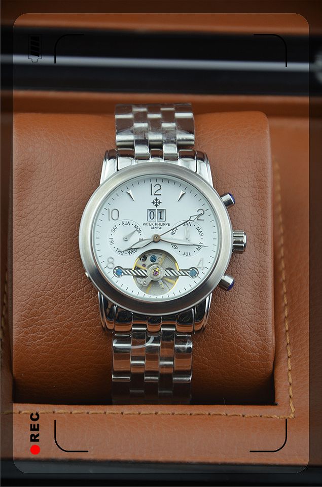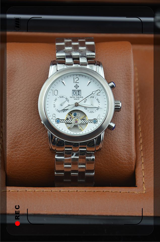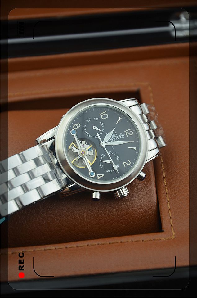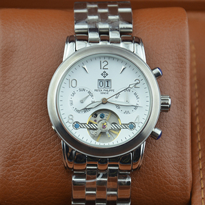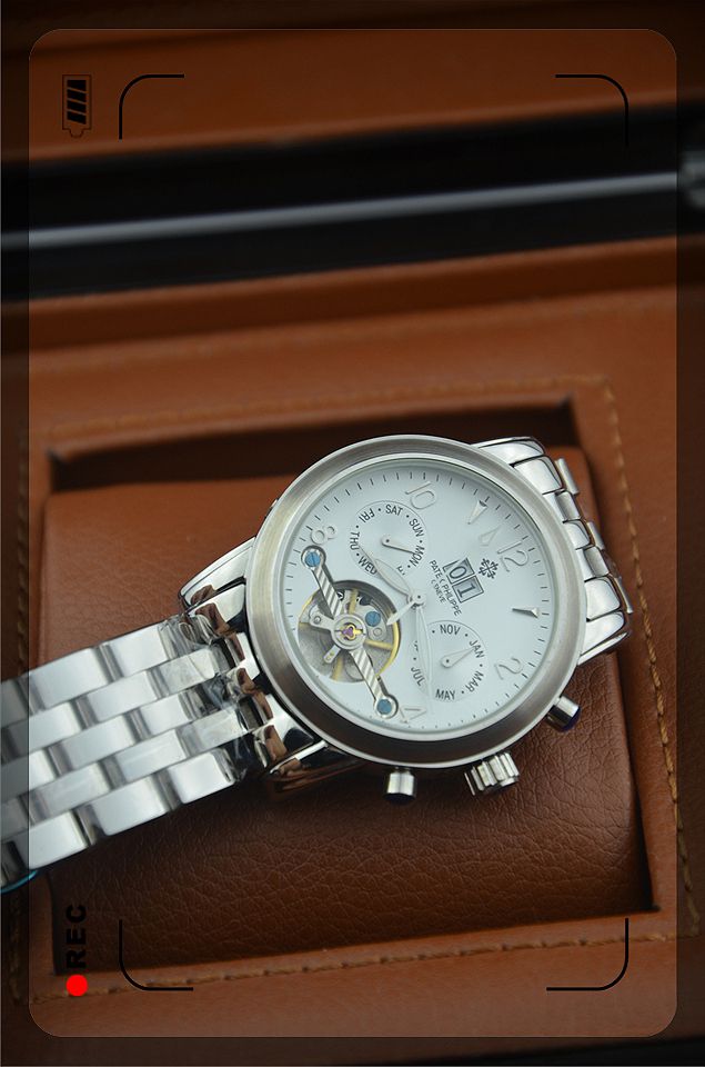 百達翡麗白色錶盤進口全自動機械陀飛輪系列單日曆男士腕錶 有白盤和黑盤兩款
