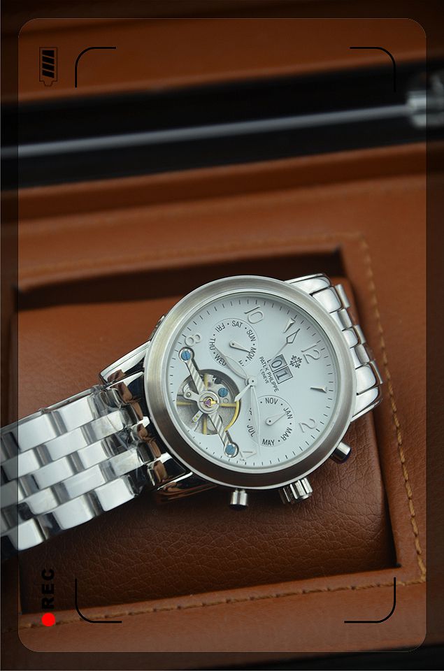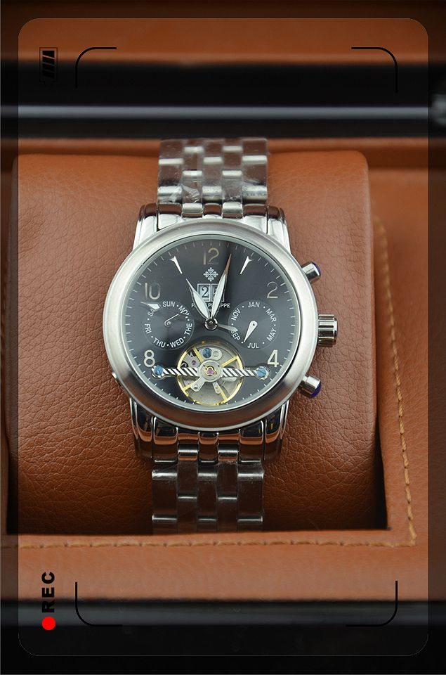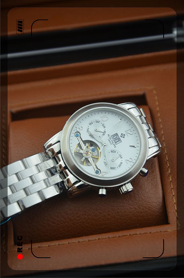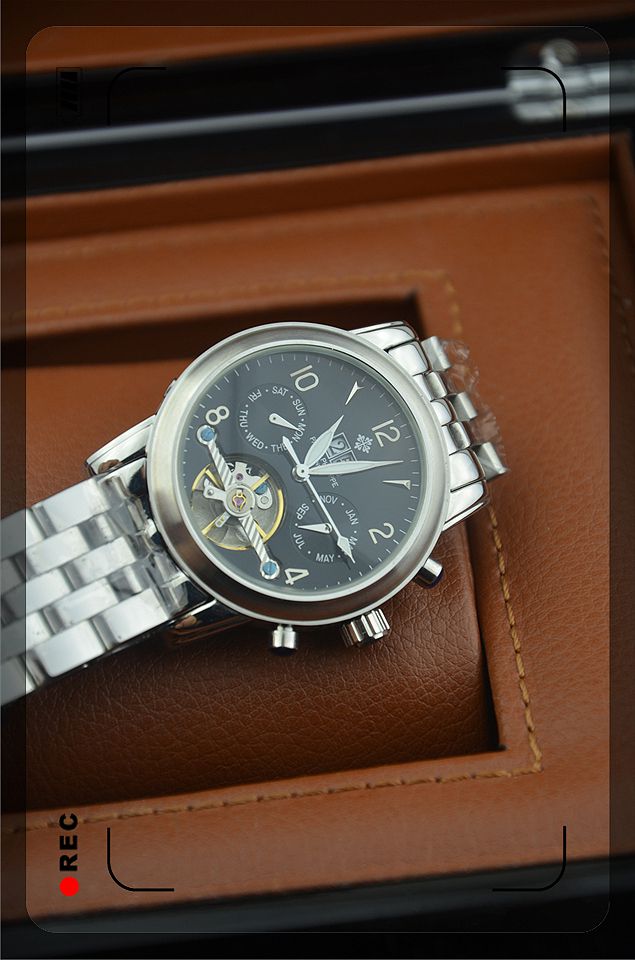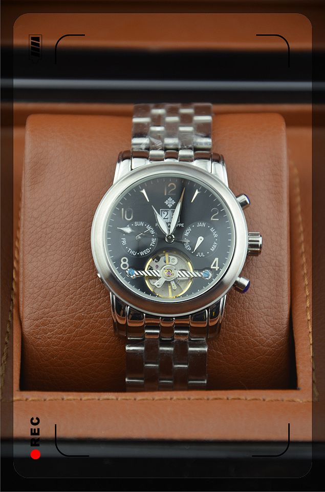 百達翡麗白色錶盤進口全自動機械陀飛輪系列單日曆男士腕錶 有白盤和黑盤兩款
