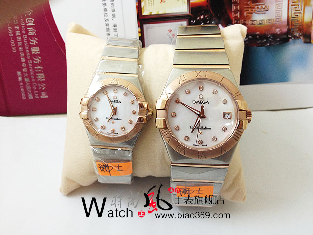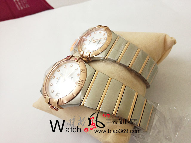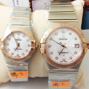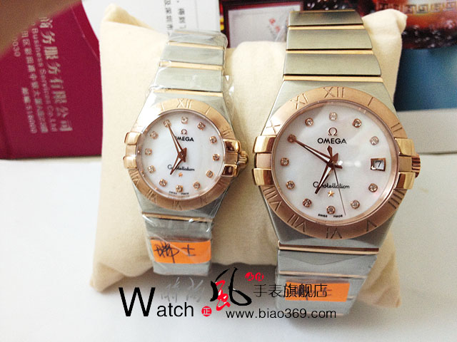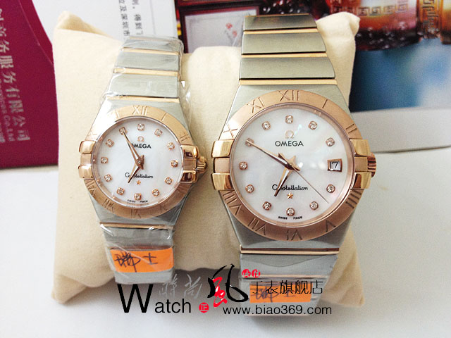 歐米茄星座系列情侶對錶玫瑰金藍寶面羅馬字面 瑞士機芯