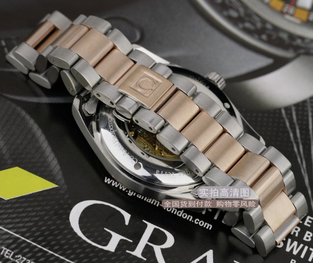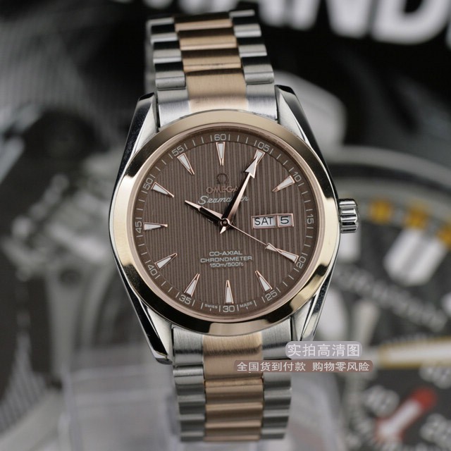 歐米茄海馬系列3針雙曆背透自動機械男錶(玫瑰金咖啡面)