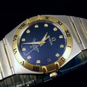瑞士原裝 歐/米/茄/ 星座機械手錶間金藍寶石男士手錶(金圈)瑞士機芯