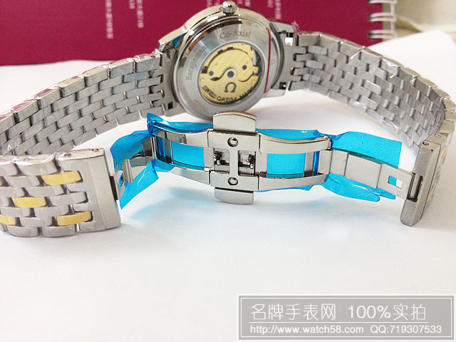 歐米茄鉆石刻度3針日曆精鋼錶帶背透機械男錶
