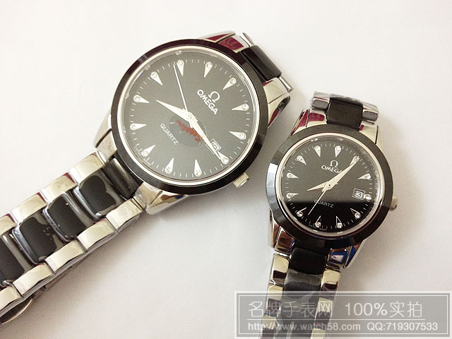 歐米茄陶瓷坦克鏈石英情侶手錶藍寶石鏡面